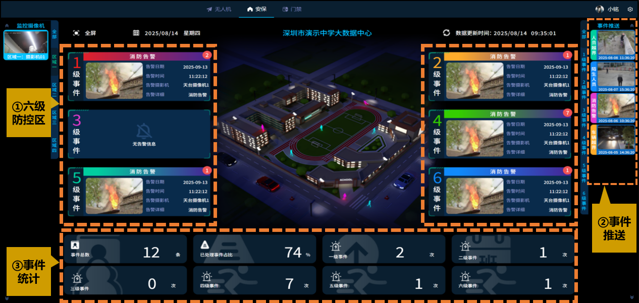 3.平台+应用:打通智慧校园、融合通讯、无人机飞控等平台,实现全栈平台支撑,6大安全防护。